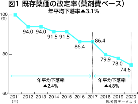 19年度の消費税増税の影響も大きく、診療報酬では多少の引き上げがありましたが、コロナ関連の補助金は1事業所あたり20年度が最大70万円、21年度は7万円。減収分の補てんにはほど遠いのが現実です。物価・エネルギー価格の高騰や後発医薬品の供給不安定化が、薬の仕入れ値の増加や価格交渉の困難も引き起こしています。