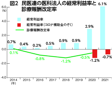 日本の病院の約7割は赤字経営で、民医連医科法人も経常利益率が1%にも満たないのが実態です。医療経営をささえる診療報酬の圧倒的な不足は明らかです。