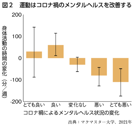運動習慣としては、ウオーキング程度であれば週150分、筋トレであれば週75分が目安です。適度な運動は免疫力を上げ、薬物治療と同じくらい効果があるメンタルヘルスケアにもなります。