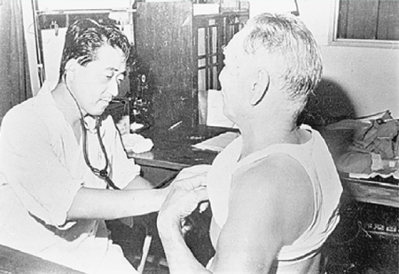 老人健診で、異常が見つかっても「医療費が払えず、病院にかかれない」との訴えが多かったことを東京・文京区の民医連が全国に発信。民医連は、健診活動と署名運動をすすめ、70歳以上の医療費無料が実現した(写真は、1967年の東京民医連で行われた老人健診。1968年7月21日号)