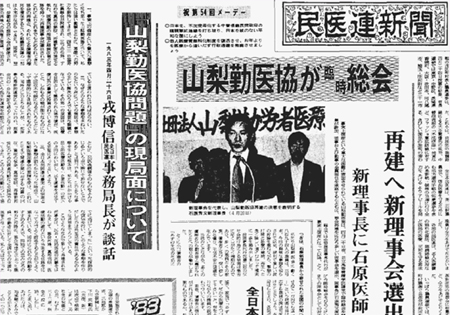 1983年4月、山梨勤医協が倒産。その教訓から、統一会計基準が作成され、患者と医療従事者の「共同のいとなみ」、共同組織と民医連の関係など、今日に受け継がれる理念が導かれた(1983年5月1日号)