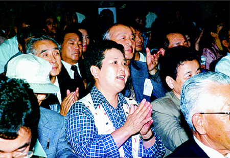 1991年から始まった共同組織活動交流集会。第5回の北海道・洞爺湖温泉での集会で「安心して住み続けられるまちづくり」が掲げられ、以降、共同組織活動の合い言葉に(写真は第5回集会の参加者。1999年6月21日号)