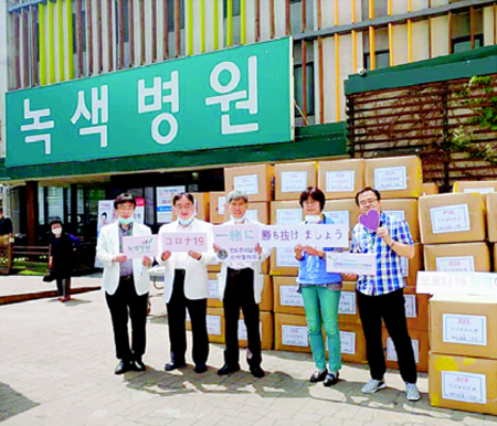2020年、新型コロナウイルスの感染拡大が本格化し、民医連でも懸命の医療・介護活動が行われた。写真は感染防護服などの支援物資を寄贈してくれた韓国の仲間たち(2020年6月1日号)