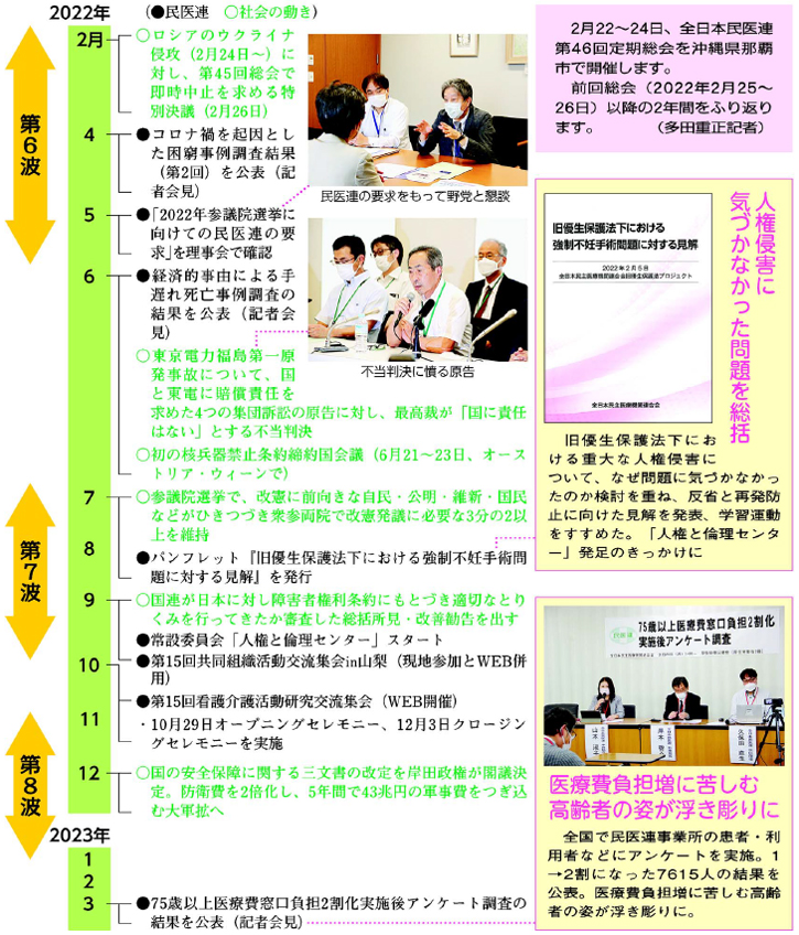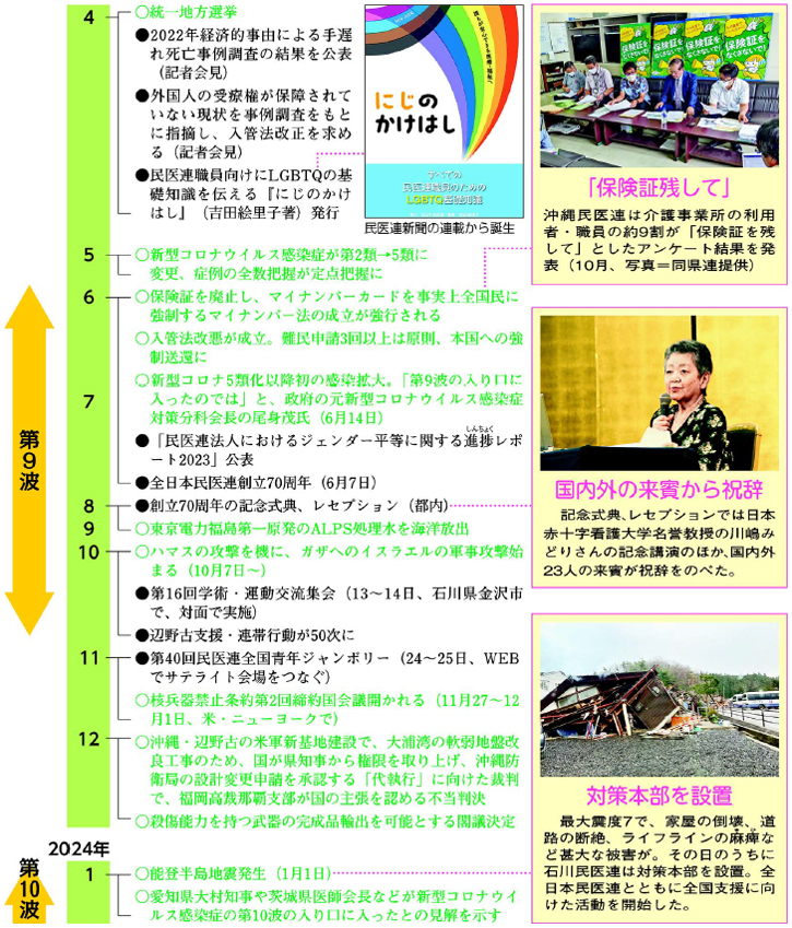 昨年、全日本民医連は70周年を迎えました。今回の総会運動方針は第1章で、60周年以降の10年をふり返り、民医連が次の10年に引き継ぐべき教訓をまとめました。