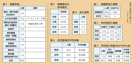 福島生協病院での2024年の全死亡96人のうち、被爆者の死亡は20人。表(1~7)で、具体的な数字を示しました。