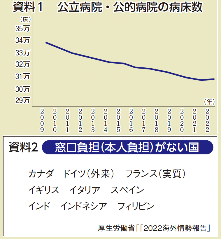国は、医療費を抑制するため、需要抑制として窓口負担増、供給抑制として医師数の抑制、病床削減を行ってきました。