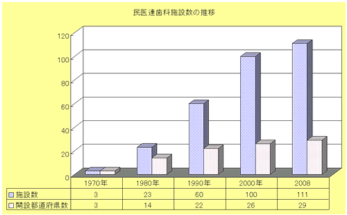 民医連の病院・診療所・保険薬局・福祉施設などは全国都道府県に1,700以上あり、歯科は30都道府県に111カ所あります(歯科職員数1,500人:内歯科医師数340人)。2008年には熊本県熊本市と山口県下関市で新たな歯科が開設しました。今後も新潟県などで歯科開設の準備がすすめられています。